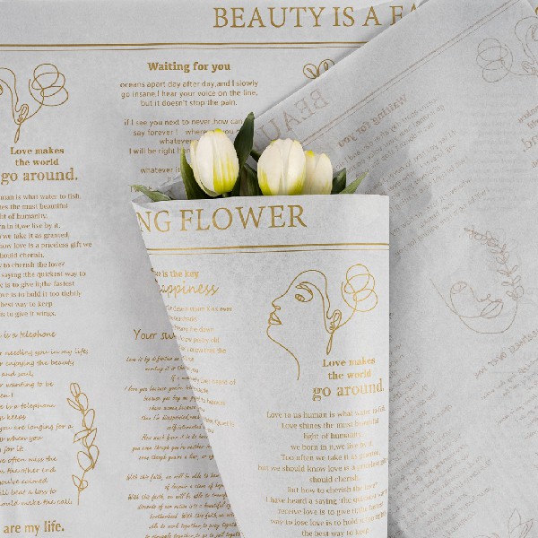 Бумага тишью "Английская газета" 50*70см Золотая надпись на сером (20л)