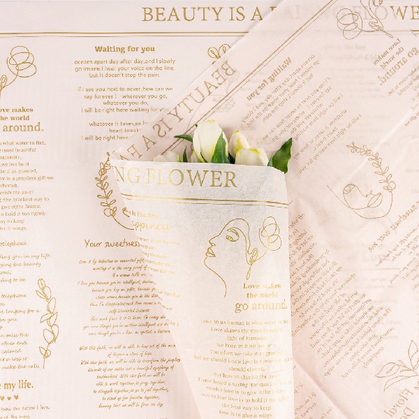 Бумага тишью "Английская газета" 50*70см Золото на розовом (20л)