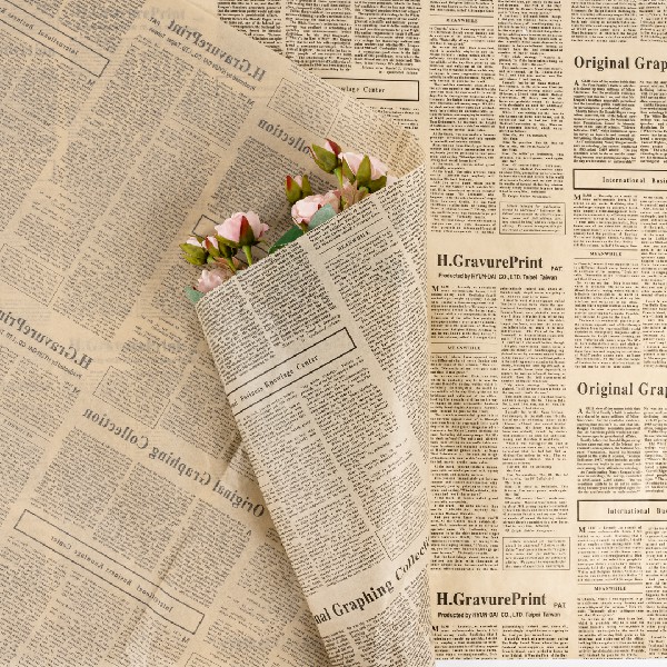 Бумага тишью "Газета" 50*70см Латте с черным шрифтом (20л)