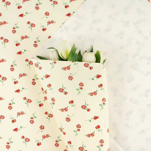 Бумага тишью "Розочки" 50*70см Красные на латте (20л)