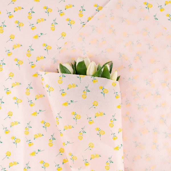 Бумага тишью "Розочки" 50*70см Желтые на розовом (20л)
