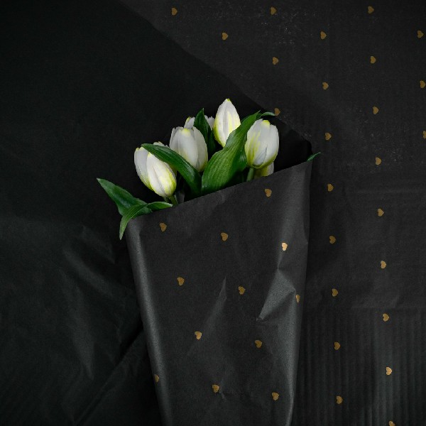 Бумага тишью "Сердечки" 50*70см Черный с золотыми серцами (20л)