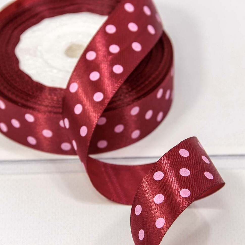 Лента атлас 2см*25Y 102 ТЕМНАЯ ПЕНКА В ГОРОШЕК