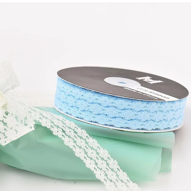 Лента кружево 3 цветка 2.5см*35ярд ГОЛУБОЙ
