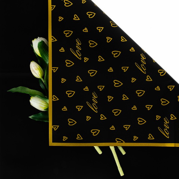 ЛИСТ двусторонняя "Сердечный бум" 57*57см Черный/20шт