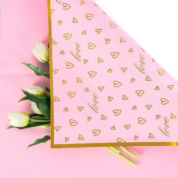 ЛИСТ двусторонняя "Сердечный бум" 57*57см Розовый/20шт
