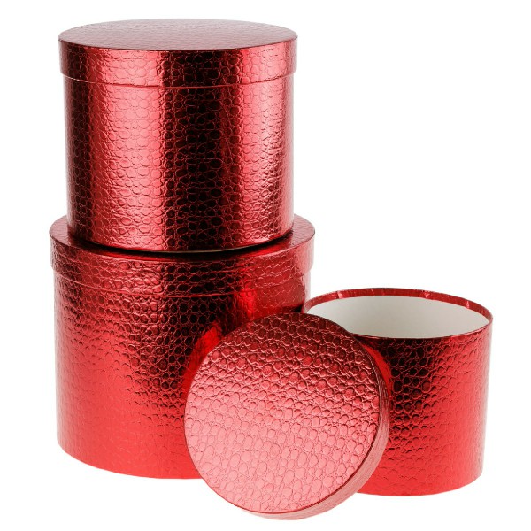 Набор/3шт "Текстура металлик" D23xH19,5см-D17xH14см (Красный) с крышкой