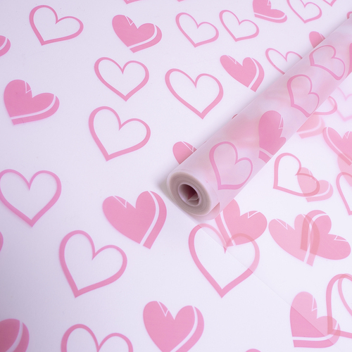 Пленка матовая "Сердечки №1" 70см*200гр НЕЖНО-РОЗОВЫЙ