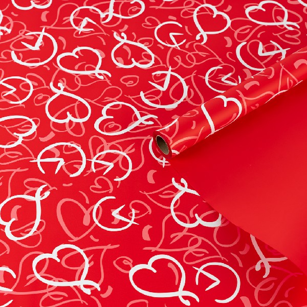 Пленка матовая "Сплетение сердец" Красная 57см*10м