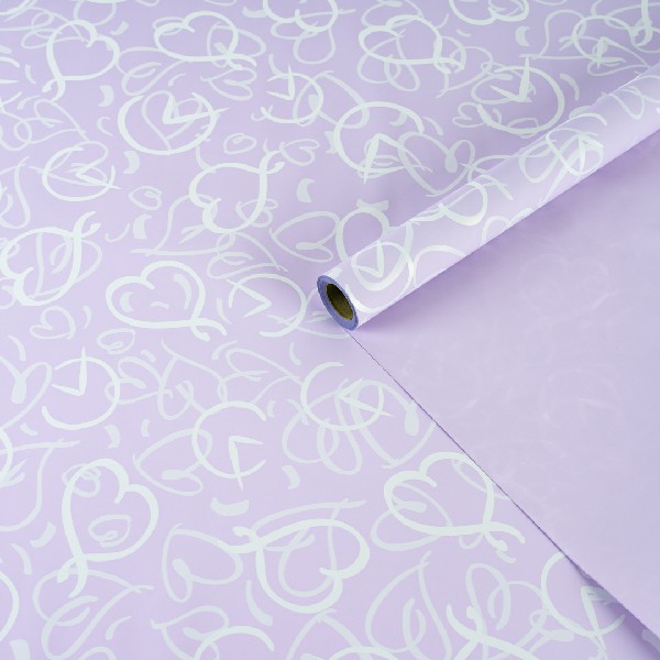 Пленка матовая "Сплетение сердец" Сиреневая 57см*10м