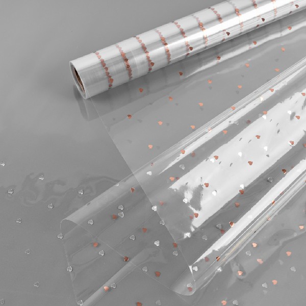 Пленка прозрачная "Любовный узор" 57см*10м Розовое-золото