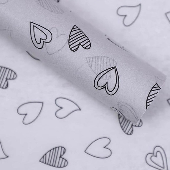 Тишью 50*70*28л Сердце штрих/ЧЕРНЫЙ НА СЕРЕБРЕ