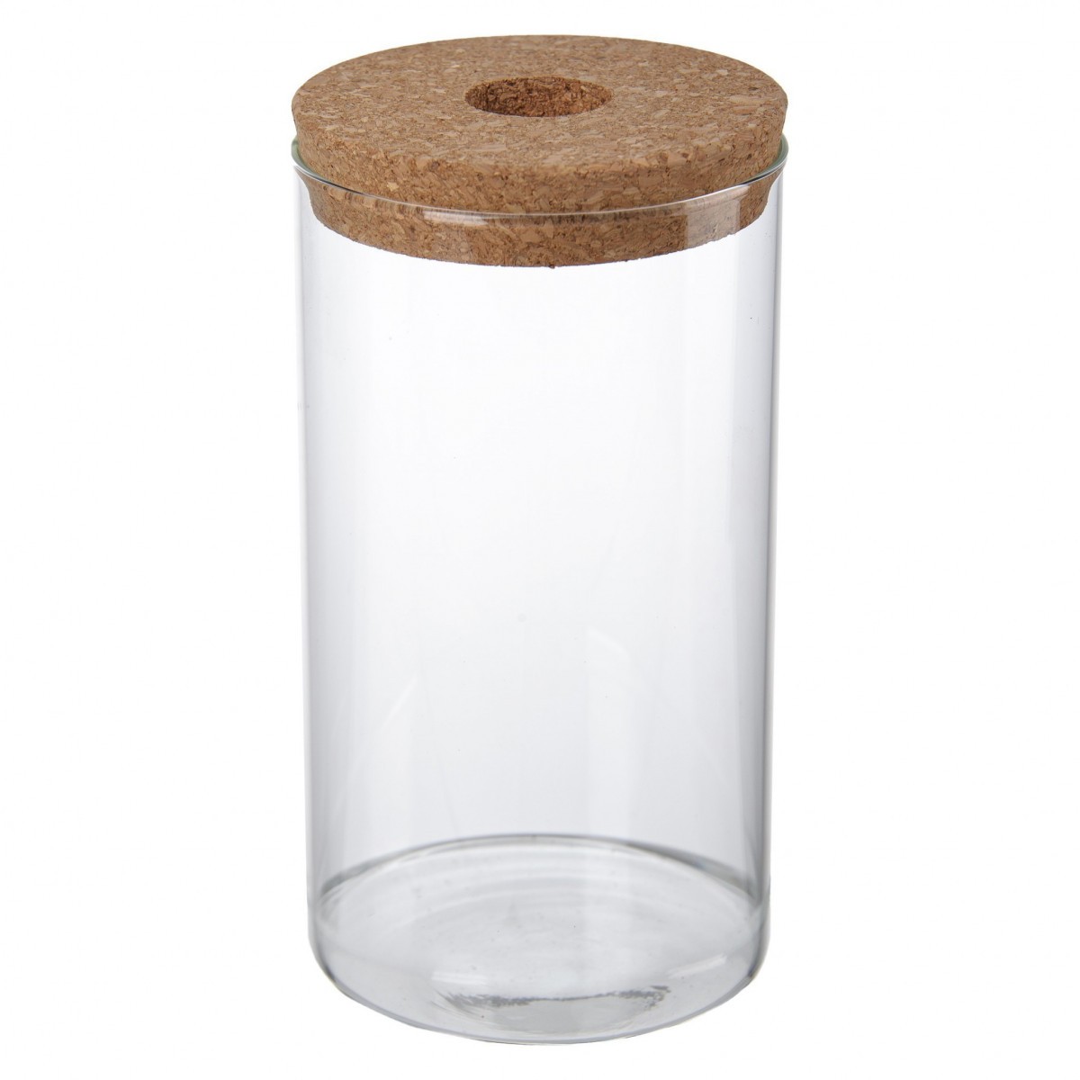 Ваза стеклянная прозрачная с пробковой крышкой с отверстием D10*H18см (HD380)